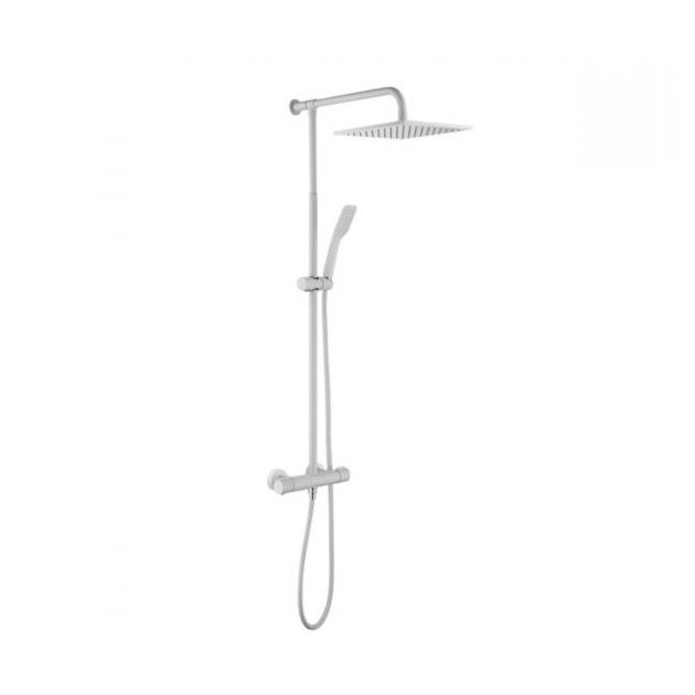 Pustite se razvajati s samostoječim termostatskim tuš sistem Blitz COOL 527/K v beli barvi s kvadratno nadglavno prho 250 x 250 mm. Nastavite si idealno temperaturo vode in odmislite vse skrbi.